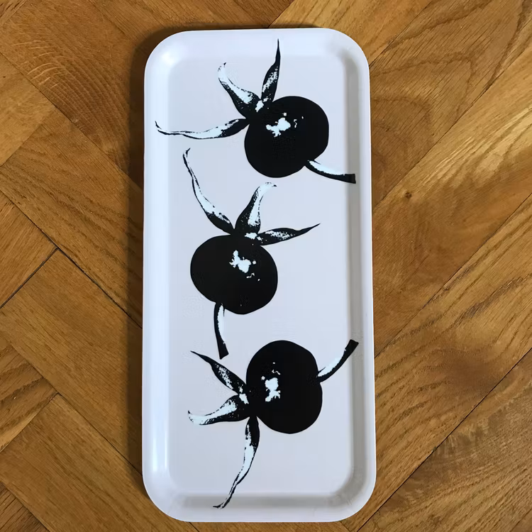 Svenskt hantverk tillverkad av björk med en melaminbaserad yta som är tålig mot värme och alkohol. Kan diskas i diskmaskin.