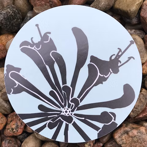Ljusgrön bakgrund, svart kaprifol. Svenskt hantverk tillverkad av björk med en melaminbaserad yta som är tålig mot värme och alkohol.