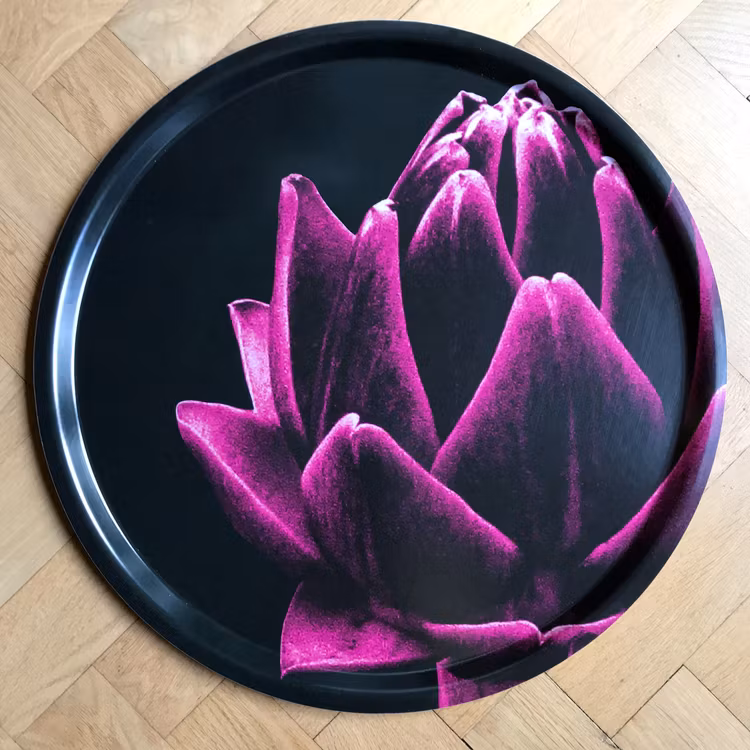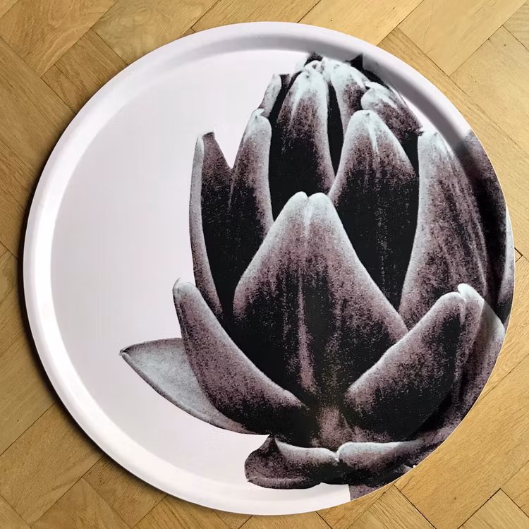 Svenskt hantverk, tillverkad av björk med en melaminbaserad yta som är tålig mot värme och alkohol. Kan diskas i diskmaskin.