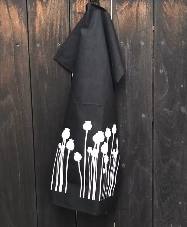 Handtryckt på 50% lin och 50% bomull. Olika förgställningar. Tvättas i 60 grader.