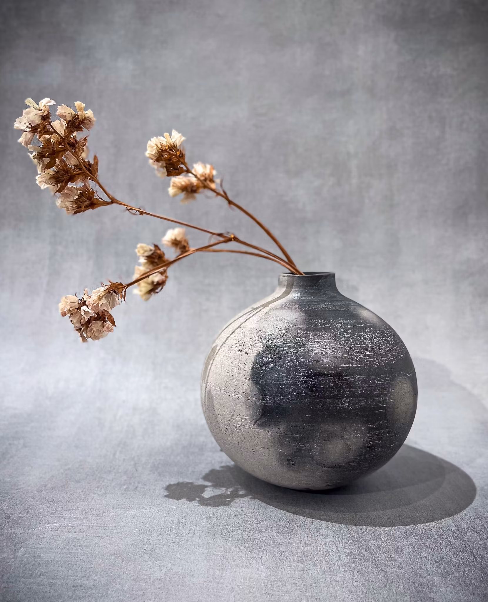 En vas skapad med tekniken Raku där varje alster blir sin egen med hjälp av eldens rök.